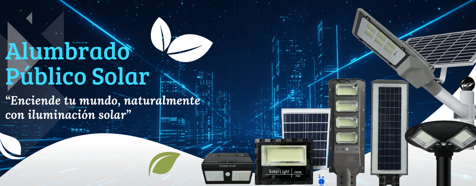 Iluminación autónoma que se carga con el sol, sin necesidad de conexión a la red eléctrica. Ideal para zonas rurales, jardines y alumbrado público.