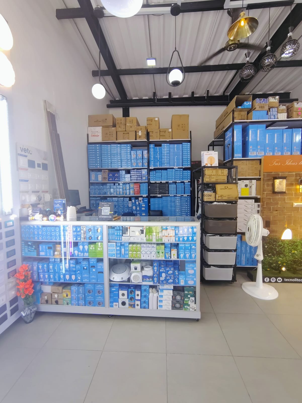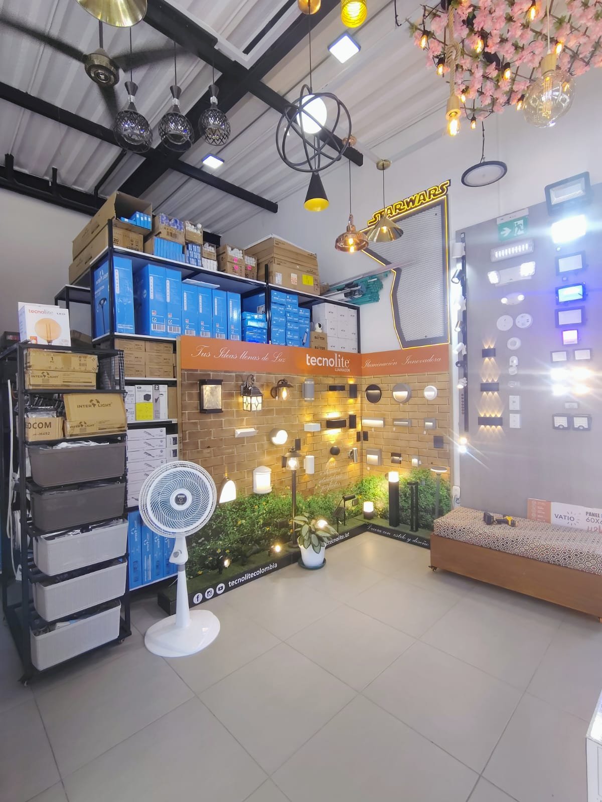 Reflectores eléctricos: Alta potencia para fachadas, bodegas, patios y áreas de seguridad.